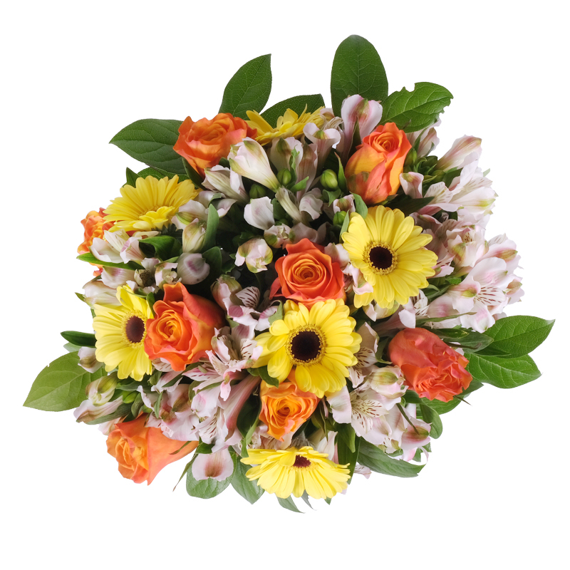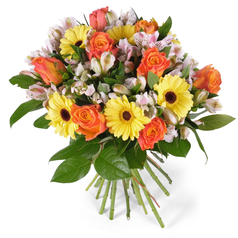 Witalna energia tego bukietu emanuje z każdego kwiata - róż, gerber i alstromerii. Duże, świeże liście podkreślają naturalność i wysoką jakość kompozycji. Idealny prezent dla osób aktywnych i kochających życie. Pokaż, że Ci zależy.