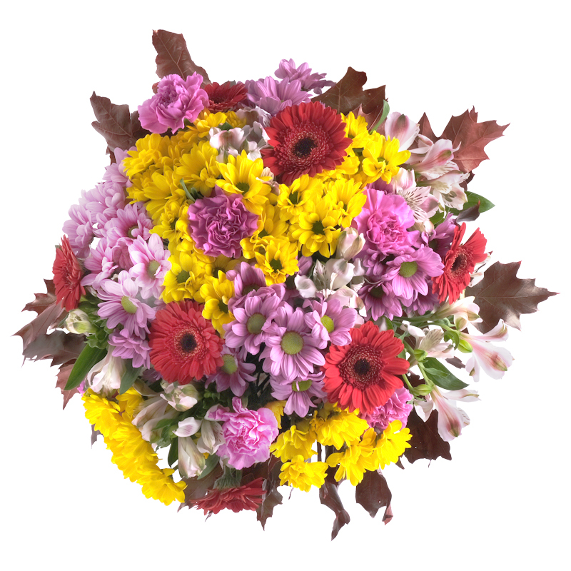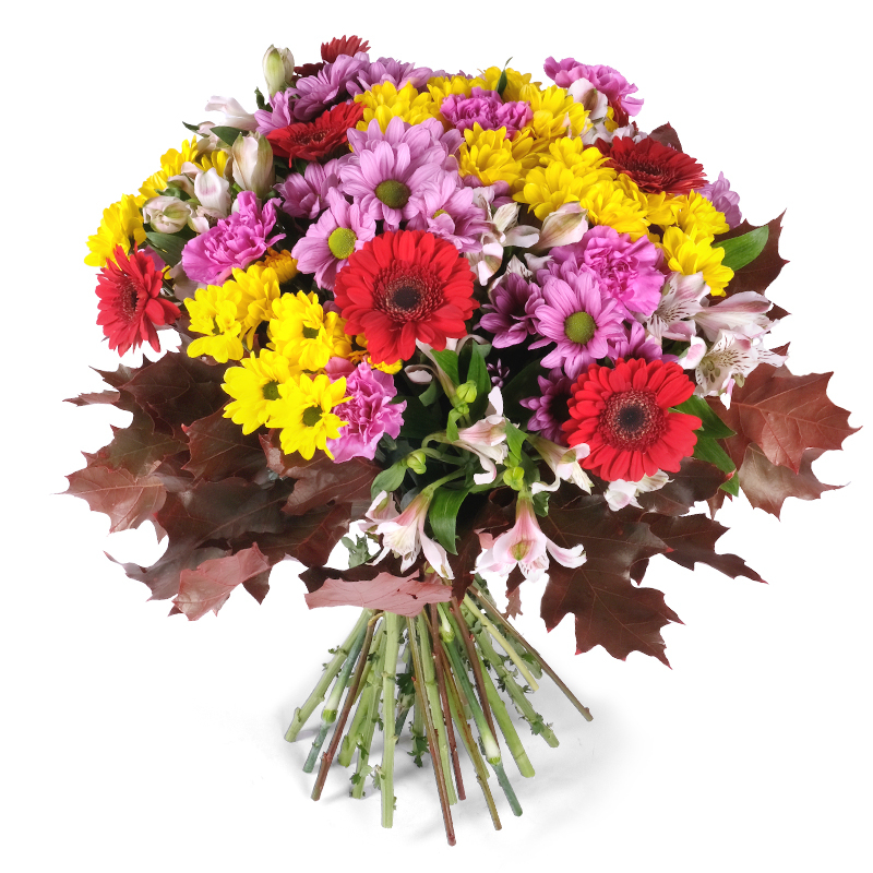 Naturalny zestaw: gerbery, margerytki, alstromerie - te trzy gatunki łączą się w ekologiczną kompozycję z naturalnymi liśćmi, która oddaje piękno dzikiej przyrody. Gerbery wnoszą strukturę, margerytki objętość, a alstromerie finezję. Idealny wybór dla miłośników autentyczności i prostych form.