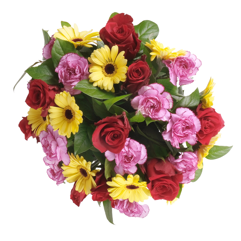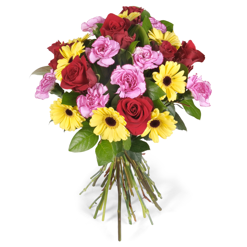 Kwiaty w tym bukiecie symbolizują uczucia, wdzięczność i szczerość. Róże, gerbery i goździki tworzą elegancką całość. To bukiet, który sprawdzi się w każdej sytuacji. Doskonały jako prezent lub wyraz pamięci. Klasyka, która nigdy się nie nudzi. Dodaj liścik i podaruj komuś uśmiech.