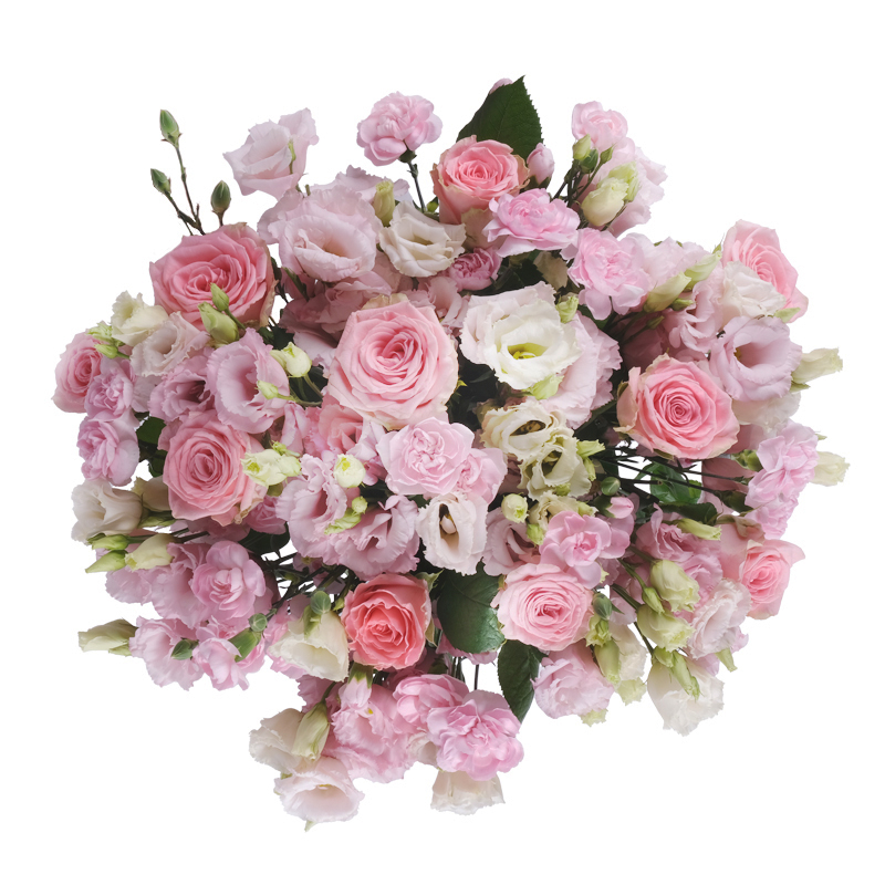 Różowy bukiet pełen wdzięku – "Połączenie idealne" z goździkami, różami i eustomami. Spraw, by był jeszcze bardziej osobisty, dołączając bilecik.
