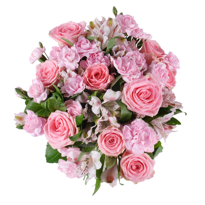 Bukiet „Słodki róż” to kwiatowa delikatność na każdą okazję. Róże, goździki i alstromerie doskonale ze sobą współgrają, a bilecik z osobistą dedykacją sprawi, że zapadnie w pamięć.