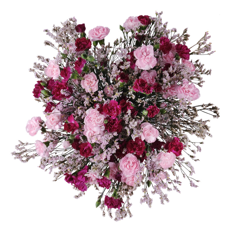 Drobne goździki gałązkowe w połączeniu z sezonowymi dodatkami tworzą bukiet „Z nutą goździka”, który jest jak delikatna opowieść – zmienna, świeża i wdzięczna.